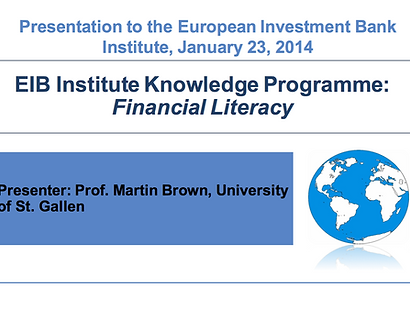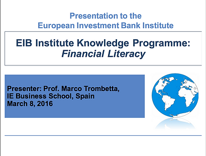 Presentations to EIB Presentation of Projects in Year 3 March 8, 2016 Presentation of Projects in Year 2 April 23, 2015 Presentation on Inequality and Financial Literacy November 10, 2014 Presentation of Projects in Year 1 January 23, 2014